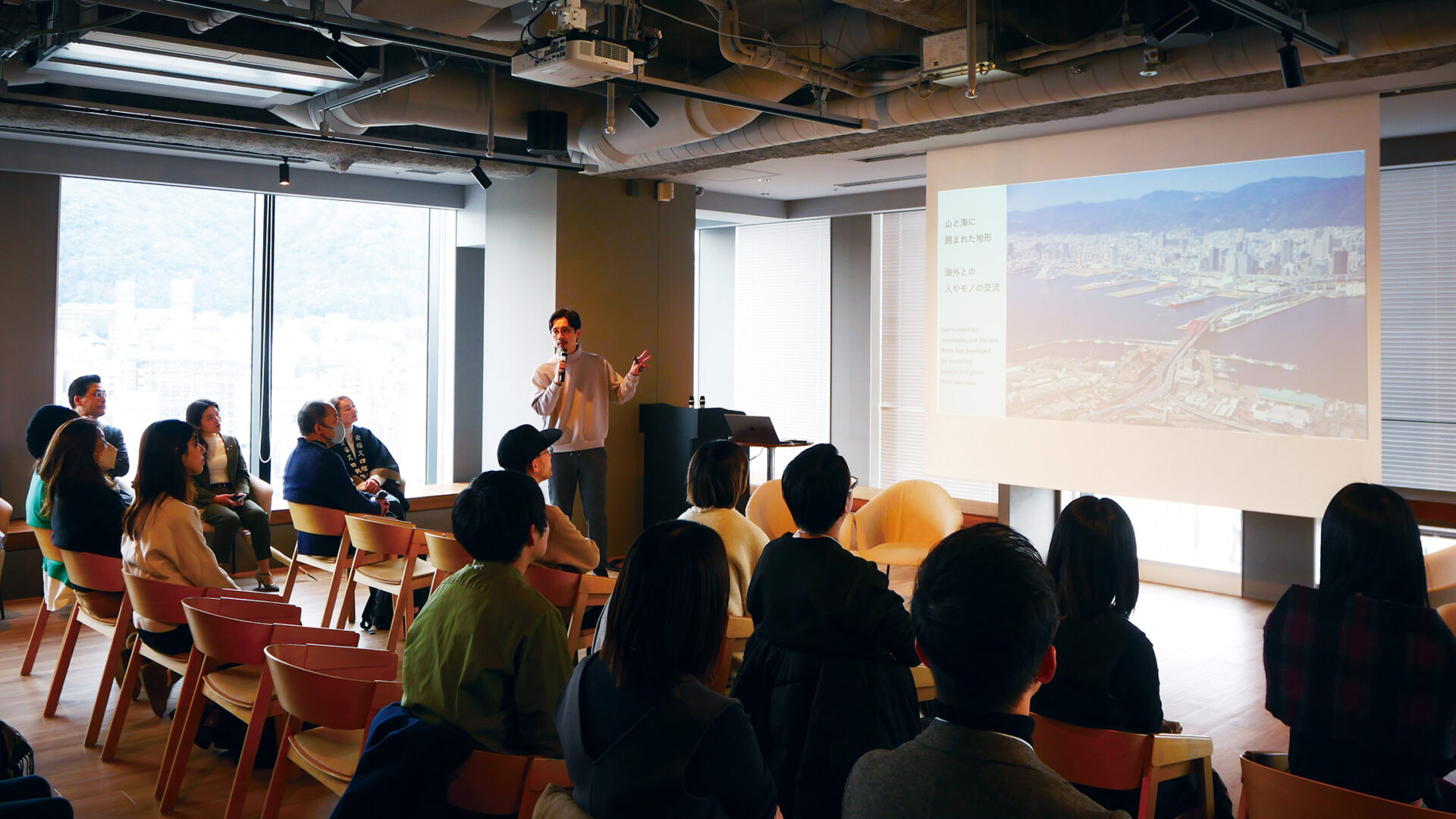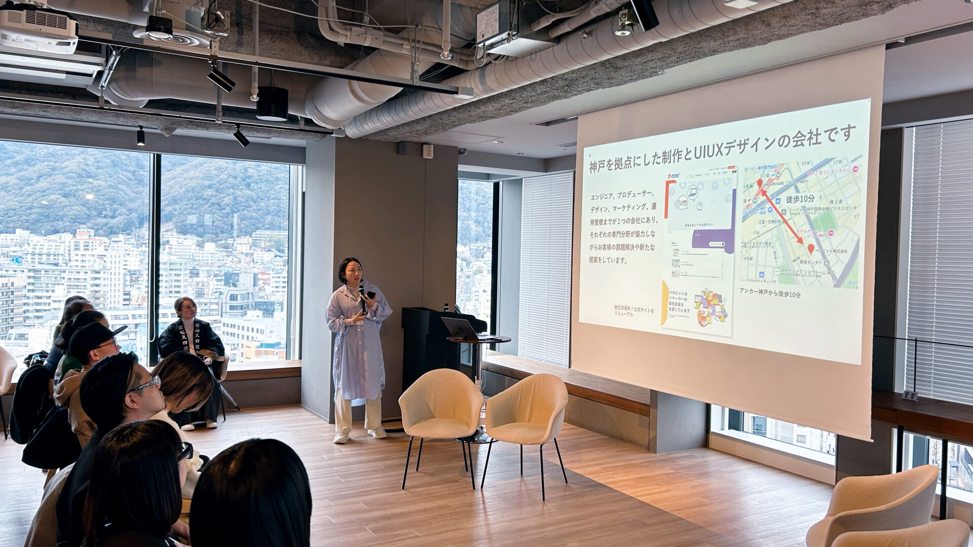「神戸の企業が感じているクリエイティブの課題」をテーマとした企業参加型プレゼンテーションの様子を中心にお届けいたします。当日は80名以上のクリエイターや神戸の企業が参加され、クリエイティブ事業への注目度の高さが伝わる機会となりました。