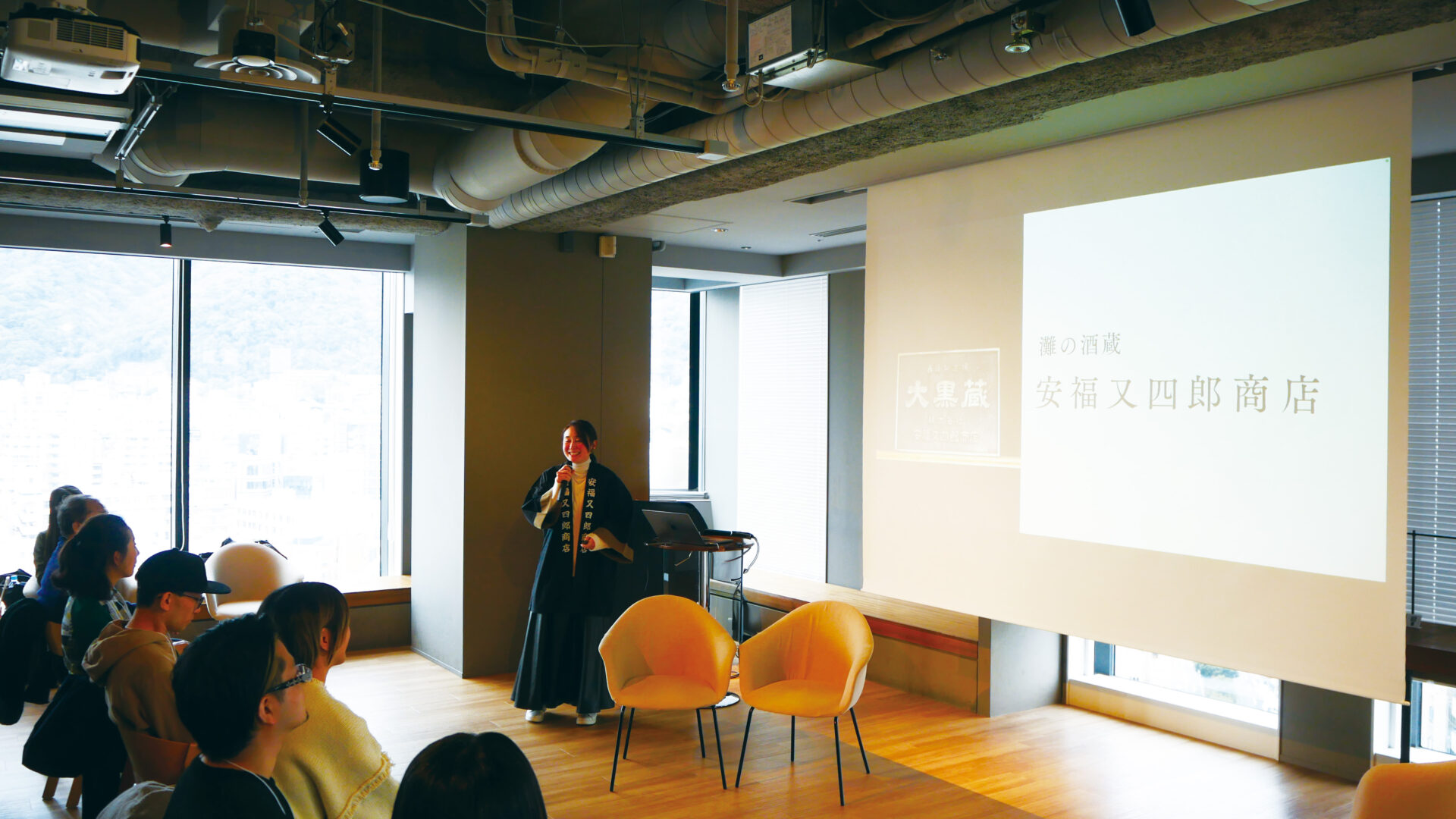 現在取り組まれている「食 を 醸 す」をコンセプトとしたアルコール事業、ノンアルコール事業のご紹介や、デザイン・制作会社に勤務されていたご自身のご経歴をお話しいただきました。クリエイティブの観点を大切にしながら安福又四郎商店の企画・広報を行われている点や、新規事業の立ち上げの際に神戸クリエイターズノートをご活用いただいた時のエピソードもご紹介いただきました。