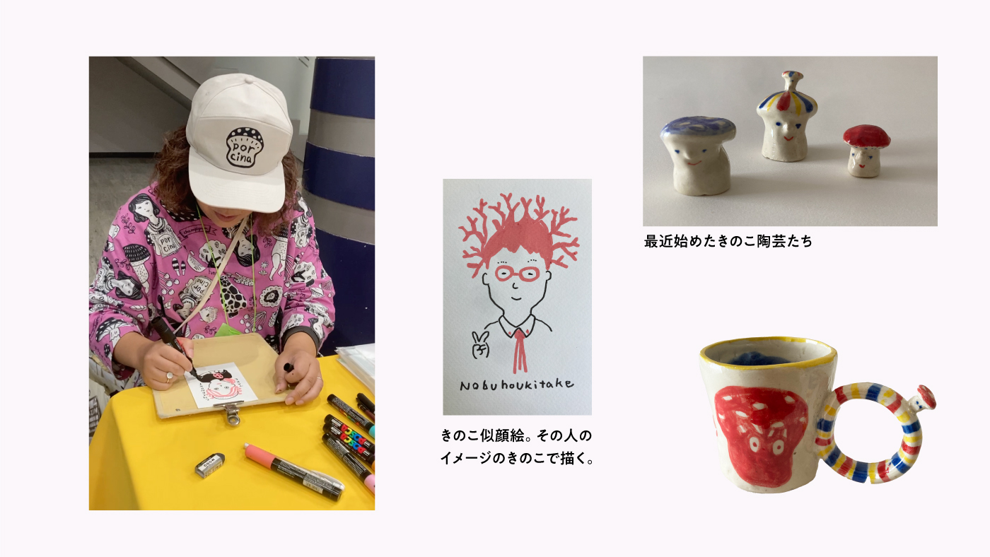 イベントで即興で描く「きのこ似顔絵」も好評。