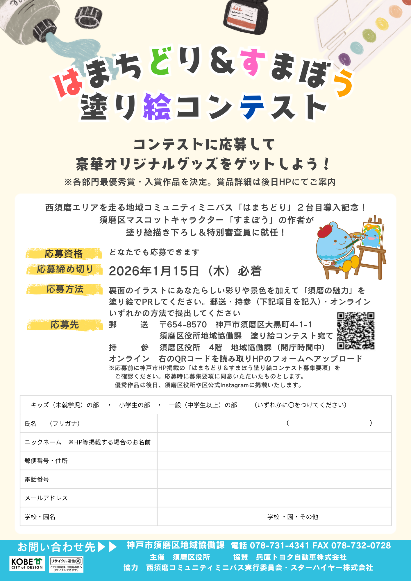 はまちどり&すまぼう塗り絵コンテスト【1月15日締め切り】