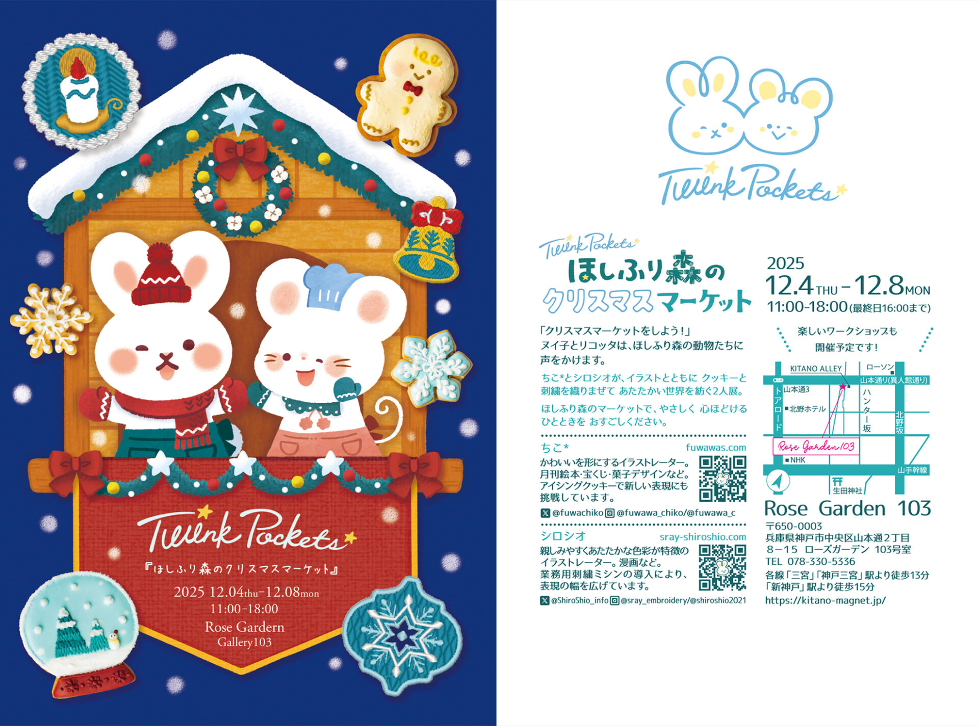 TwinkPockets ちこ* × シロシオ 2人展 『ほしふり森のクリスマスマーケット』 を開催します。