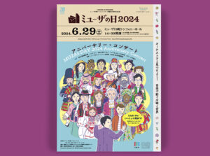 『MUZAの日』メインビジュアルを描きました。いろんな国の方が集うコンサートのビジュアルを国際色豊かに楽しく描きあげました。チラシの他、ポスターやバナーに展開されています。